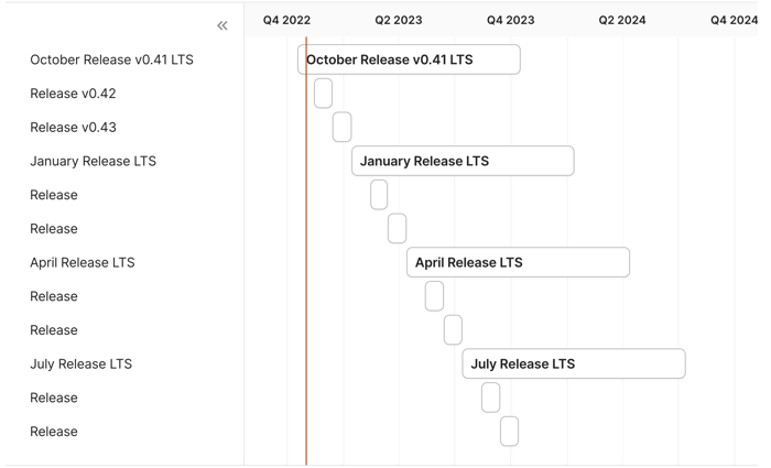 In October 2022 the Tekton community defined its policy for long term support (LTS):